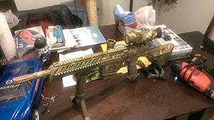 Another picture of the ACU paint job on the "Barrett". You can see the Warsensor Lion logo was incorparted into the pattern on the side of the mag well. |