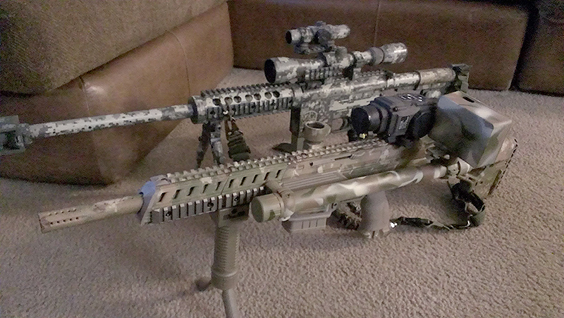 The DAM with the ATN THoR thermal scope. This is an early picture and the scope now sits on the same angled MilSig rail as the NCStar scope. |