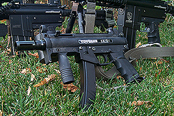 The Tippmann A5 in a stubby SMG configuration. This marker is so small it can almost be used like a pistol. |
