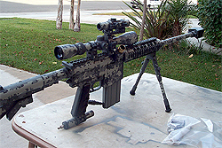 Another picture of the ACU paint job on the "Barrett". You can see the Warsensor Lion logo was incorparted into the pattern on the side of the mag well. |