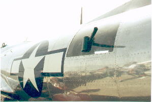 The worst problem about the waist position was not fear of loosing oxygen, rather it was frostbite. Until the G model, waist windows on the B-17 were open to a 200 mph, -50 below zero, slipstream of air. Exposure to this extremely cold air for even a few seconds could leave one with a mild frostbite. To battle this enemy, waist gunners wore layers of heavy clothing and an electrically heated suit. However this equipment had to be put on before reaching the high altitude and, while the aircraft was climbing, the waist gunners had to be careful not to sweat because the sweat would freeze once the higher altitudes were reached making their task even more miserable. This cold would also cause ice to form in the oxygen masks of the gunners. This had to be cleared frequently as it would block oxygen flow if went unchecked. Two other problems faced waist gunners. The first of these two was attempting to actually hit a German aircraft. It did not take the Germans long to figure out that the best way to attack a Fortress was from dead ahead. If he chose even to come it from 11:00 or 1:00 Oclock, positions just to the left and right of directly in front, the fighter would come under attack by more guns than if he were to attack head on. As such, the waist gunners soon found themselves only able to get off short bursts as the enemy aircraft zoomed past the formation. Another thing that made it difficult to hit a German aircraft was the fact that the gunners had to manhandle the large .50 cal. machine guns in a 200 mph. slipstream. Waist gunners had to fight the guns themselves to try and aim at fighters coming in from the front half of the formation. This problem was later solved by adding a power assisted mount to the waist gunner positions in the B-17G. There was one other factor that lead to the difficulty of downing an enemy plane. The sights of the .50 cal. machine guns in the waist were aimed with a ball and ring sight. This meant that if the gunner was not looking through the sight at exactly the proper angle, his aim would be off. Only the top turret gunner and ball gunner had computing sights that allowed the gunners aim to be correct regardless of the gunners position in regards to his sight. Later, in the G model, the waist gunners along with the bombardier and tail gunner would also have these computing sights at their positions.